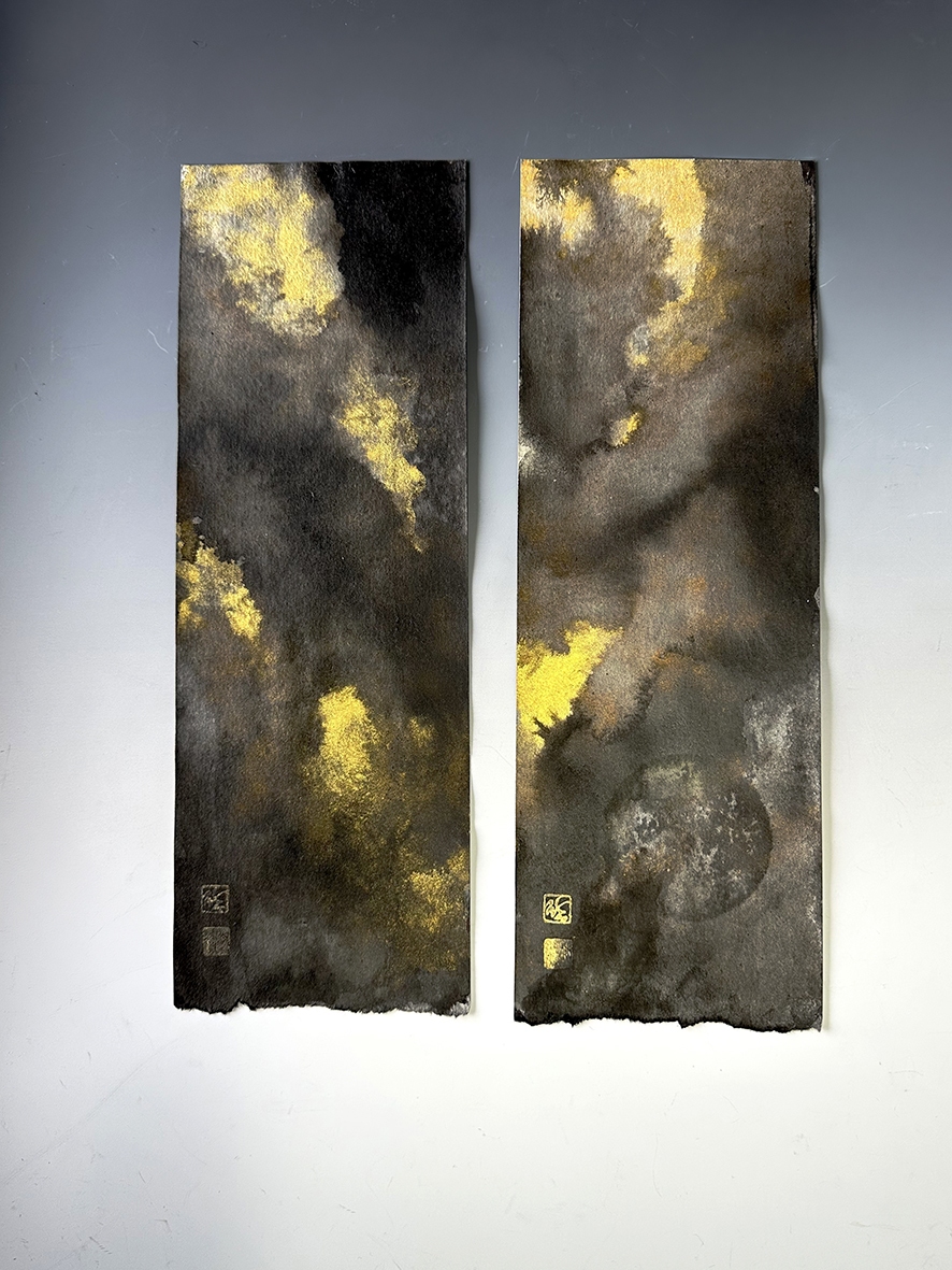 Their conversation that day evolved into a creative collaboration. Through painting and mixed media, Csanky and Suzuki explore themes of meditation, balance, and universal connection—the invisible threads that link living beings. Their works invite viewers to pause, breathe, and recognize the beauty of existence through observation of color, sunlight, moonlight, and atmospheric composition. This exhibition explores the energy of harmony and contemplation, reminding us that peace begins in quiet awareness—and that art has the ability to transcend limitations of language by speaking through expression and form.